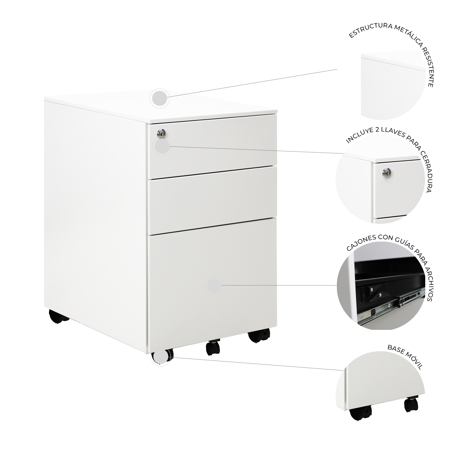 - Cajones con guías para archivos.