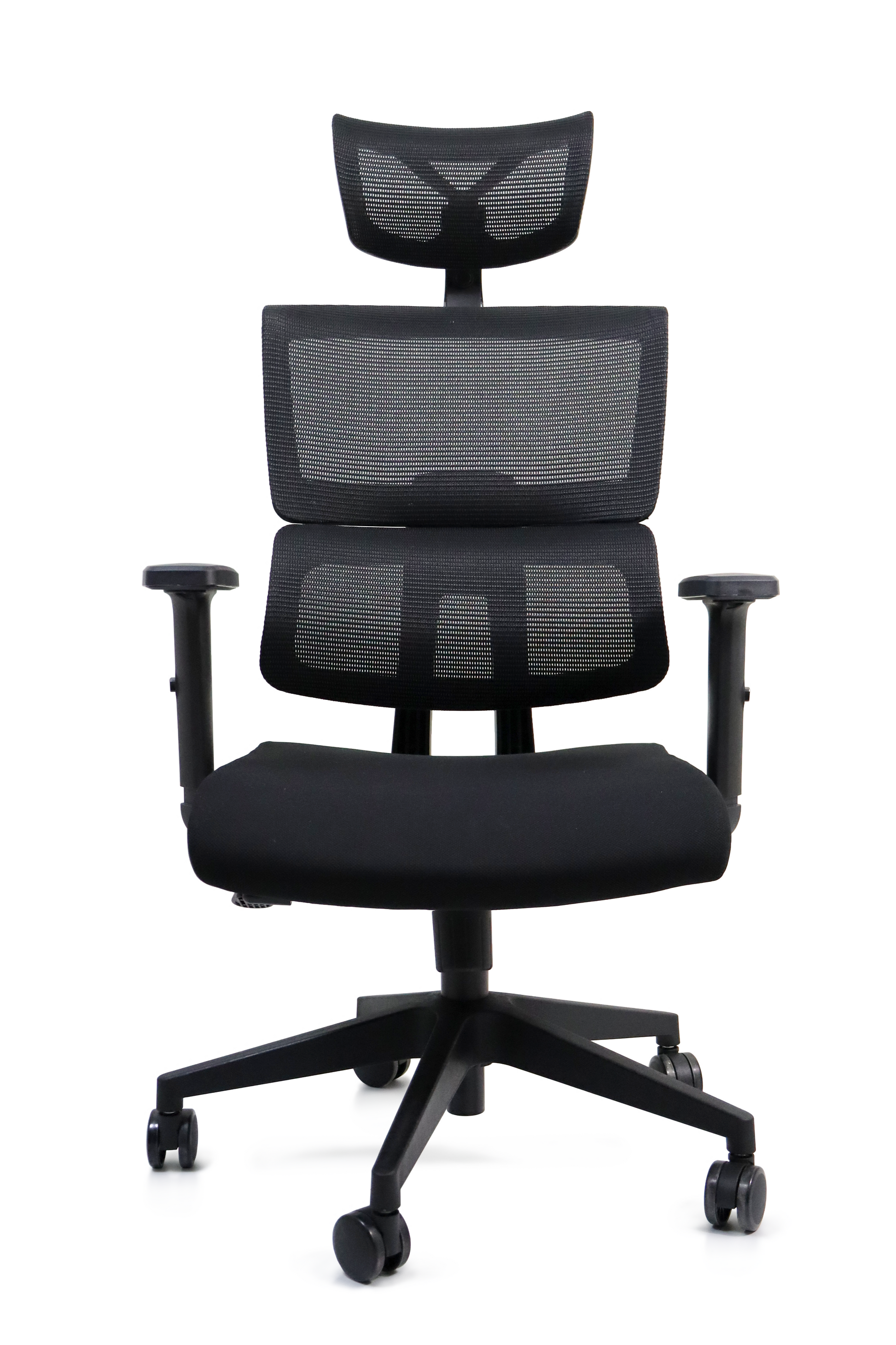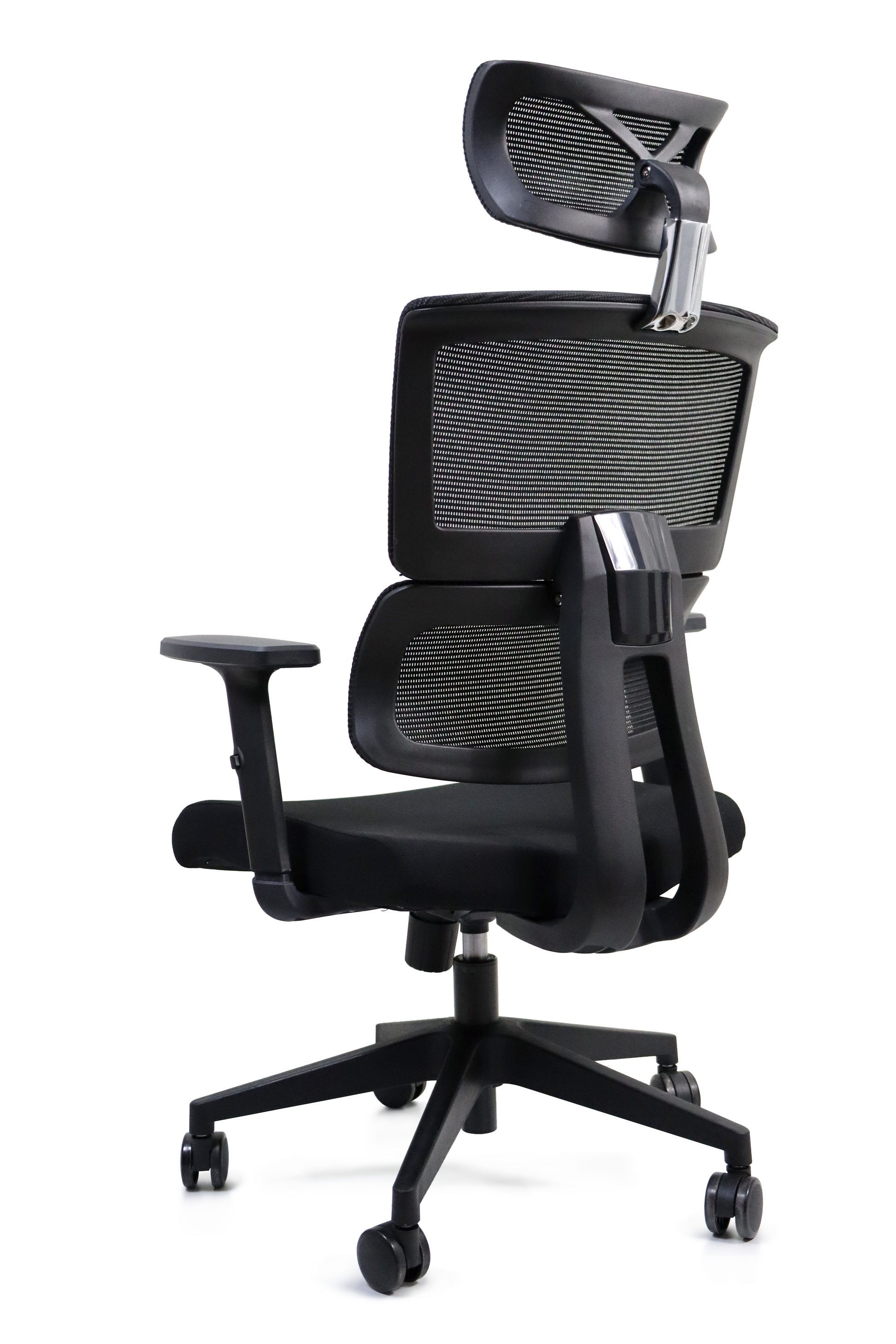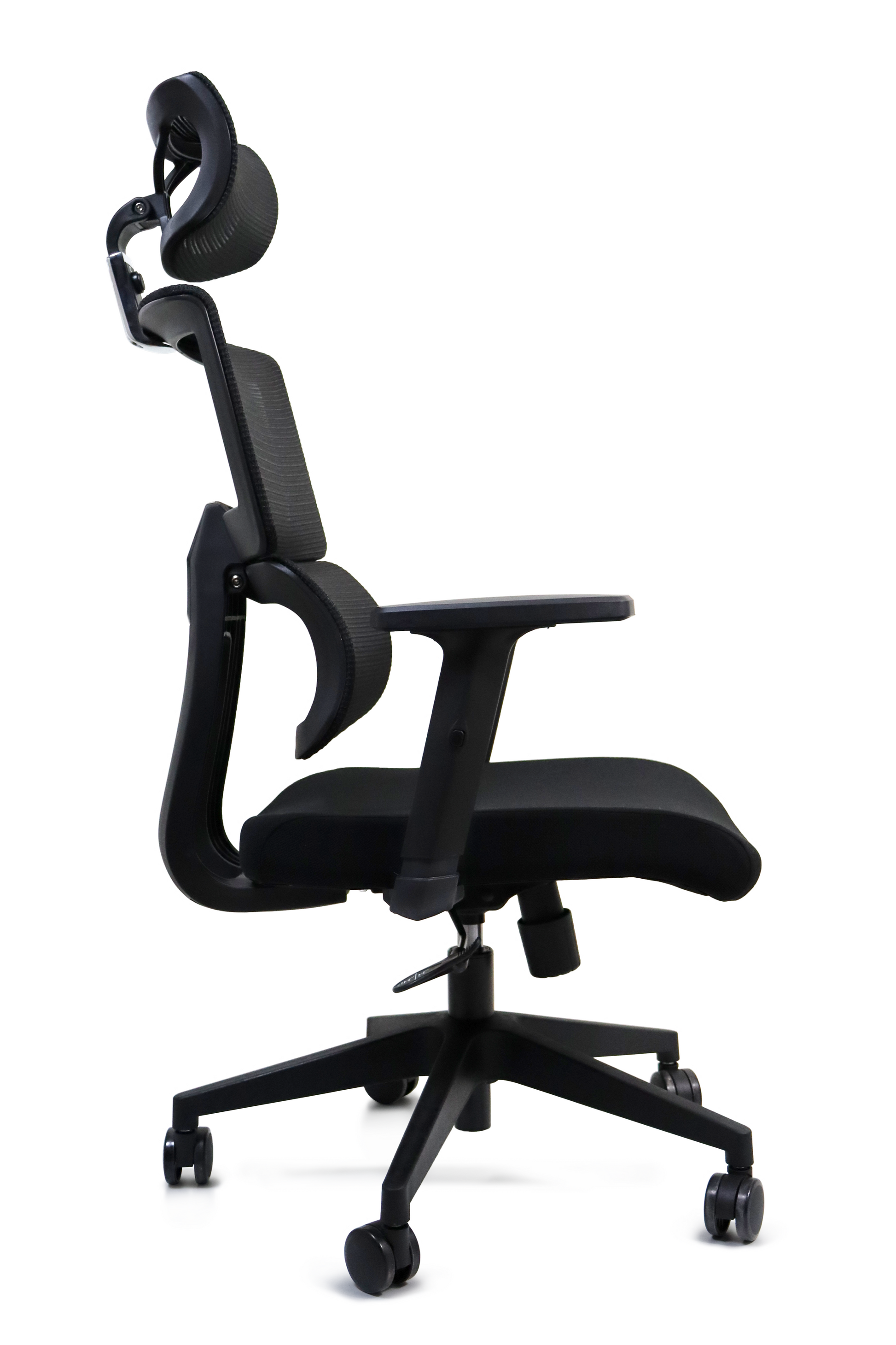 - Respaldo tapizado en mesh y asiento en tela.